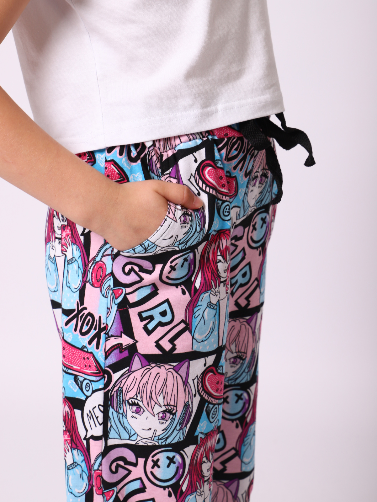 Брюки для девочек подростков. Детские подростковые штаны сшиты из легкого хлопкового трикотажа, прямого силуэта, внизу на резинке, с кармашками по бокам, высокой посадкой по талии с регулируемым шнурком. Подростковые брючки сшиты из натурального материала, свободные и дышащие. Спортивки подойдут для прогулок и активных спортивных игр и соревнований . Это прекрасные брюки для повседневного ношения. Домашние дела с этих брючках очень удобно делать. Джоггеры подходят и как домашняя одежда, в них комфортно и уютно. Кто-то из ребят захочет использовать их как пижамные брюки. Будем рады, если вы оставите отзыв о наших моделях одежды. Учтём Ваши пожелания! Повседневные брюки это удобная практичная немаркая модель на каждый день. Поскольку эта летняя модель внизу на резинке, ее можно выбирать с небольшим запасом по длине, они сядут на ножку ребенка удобно. Спортивные трико можно использовать как пляжные. Они подойдут девушкам, поскольку ростовка этой модели легких штанов до 164 роста. Данная модель порадует ребят в качестве подарка.