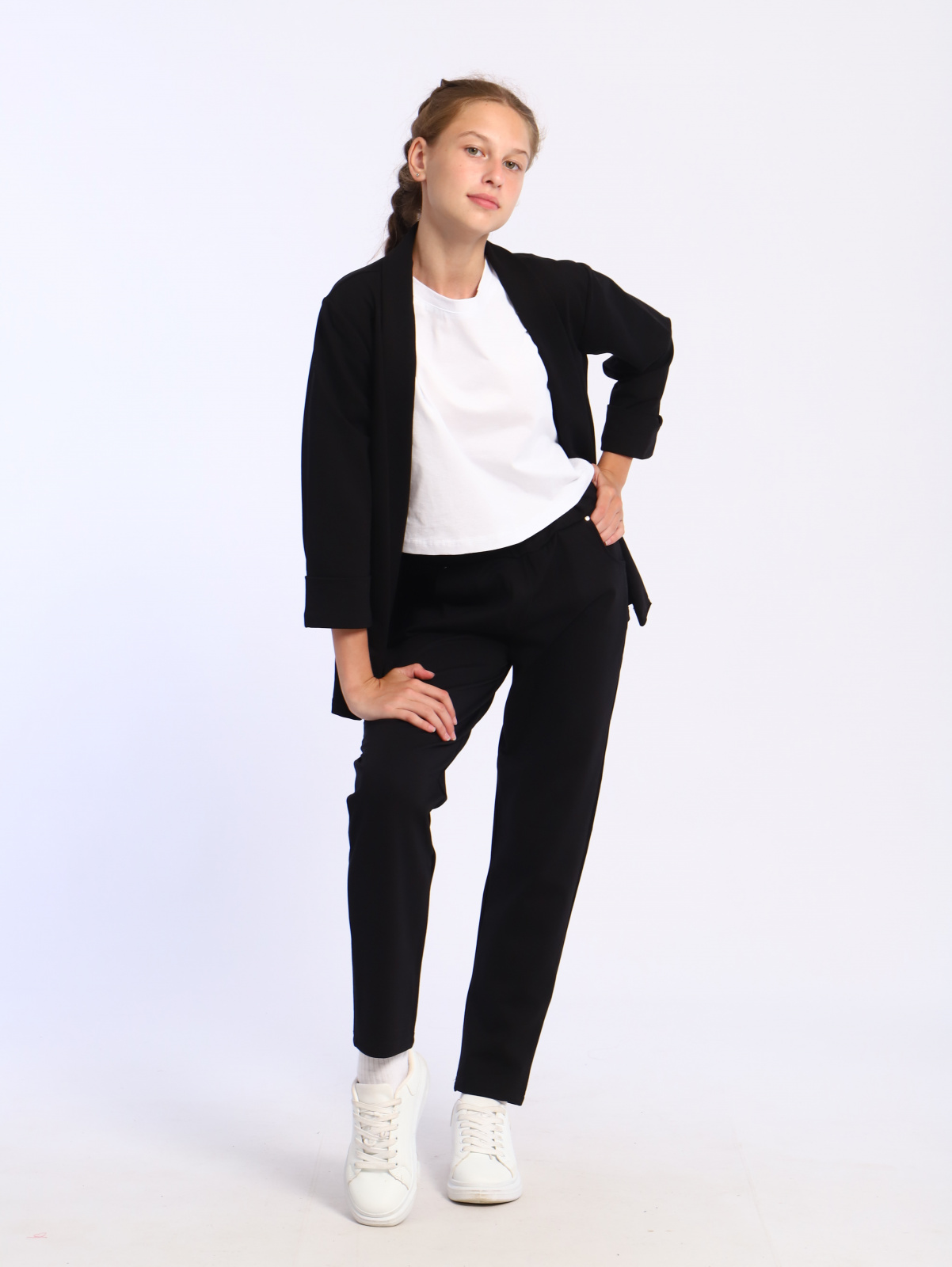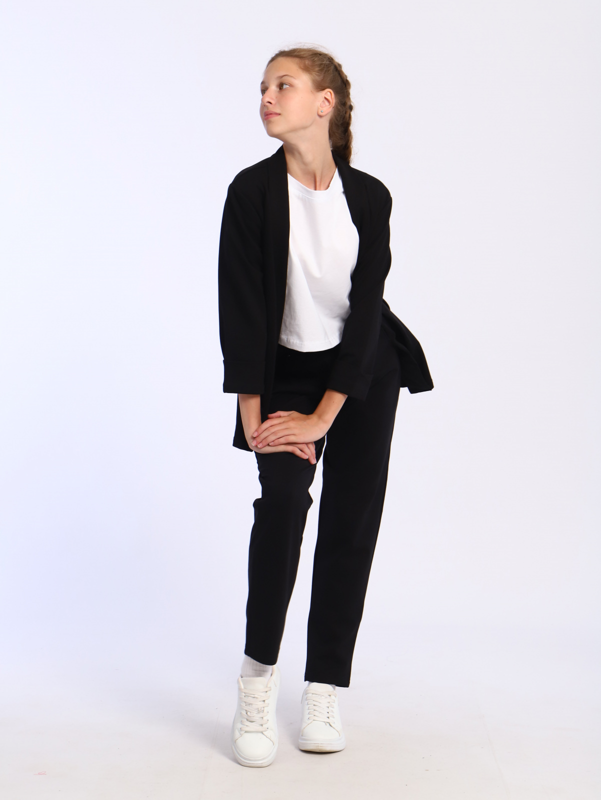 Детские брючки можно сочетать с футболкой, блузкой, лонгсливом, водолазкой, жилетом, джемпером, кофтой, кардиганом, толстовкой, свитшотом, худи.