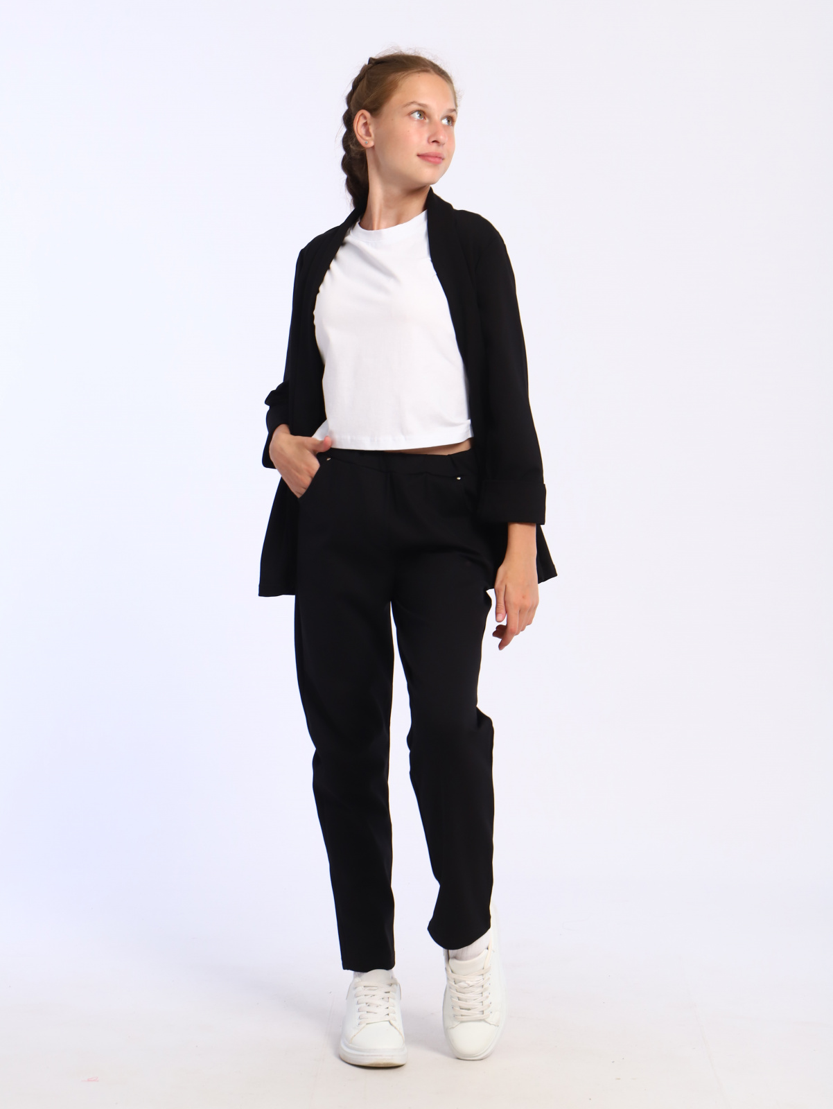 Подростковые штаны в классическом стиле, прямого кроя, с карманами в боковых швах.
