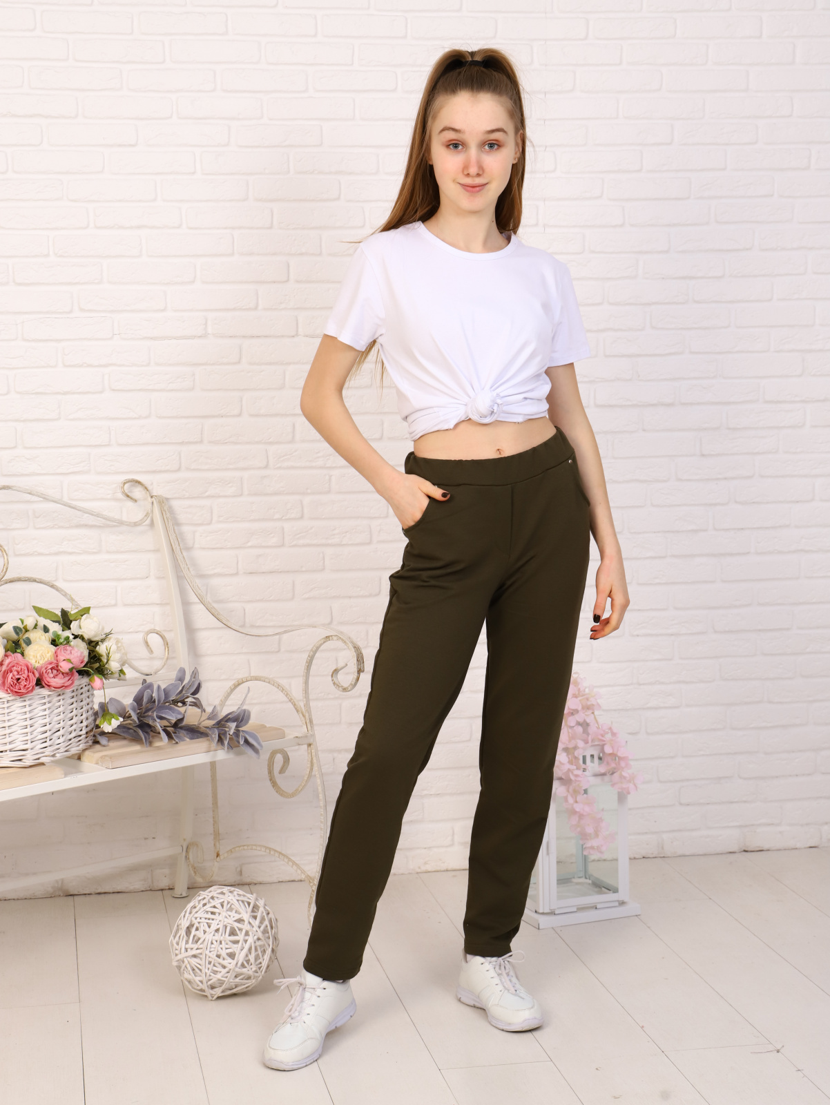 Брюки для девочки-подростка однотонные.