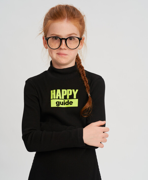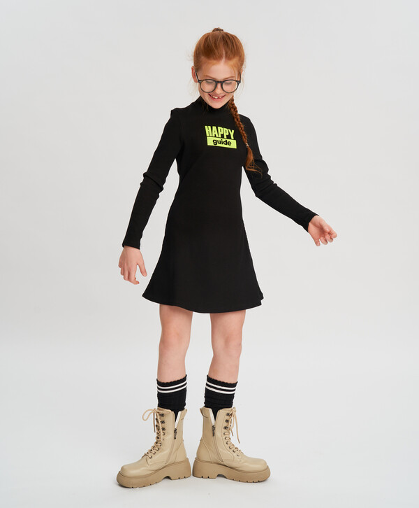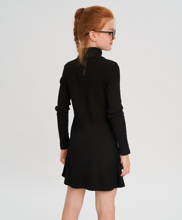 цветЧерный95% хлопок/5% эластан Хлопок Платье-водолазка в рубчик с длинным рукавом черное для девочки Button Blue