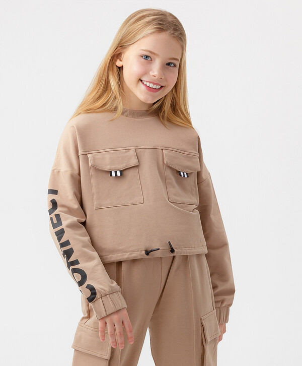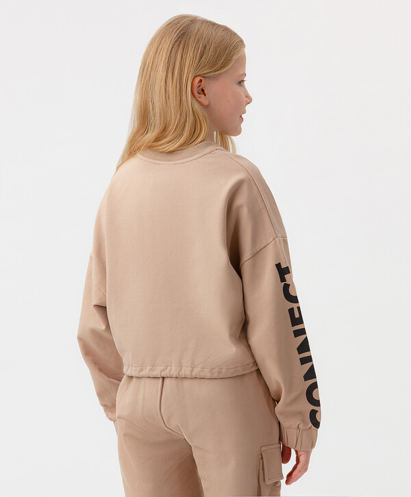 цветБежевый95% хлопок/5% эластан Хлопок Толстовка укороченная с контрастным шрифтовым принтом бежевая Button Blue