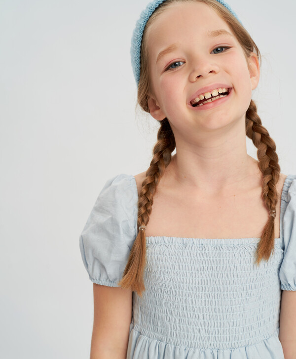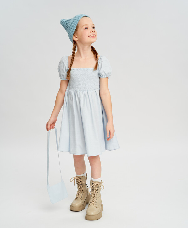 цветГолубойплатье :100% хлопок/сумка/100% хлопок Хлопок Платье с сумочкой через плечо голубое для девочки Button Blue