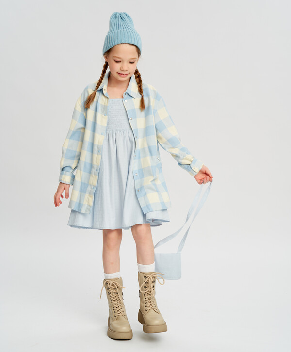 850 р. 1700 р. Платье с сумочкой через плечо голубое для девочки Button Blue