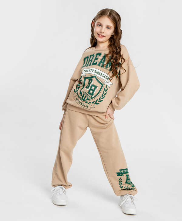 1235 р. 1900 р. Свитшот оверсайз с принтом бежевый для девочки Button Blue
