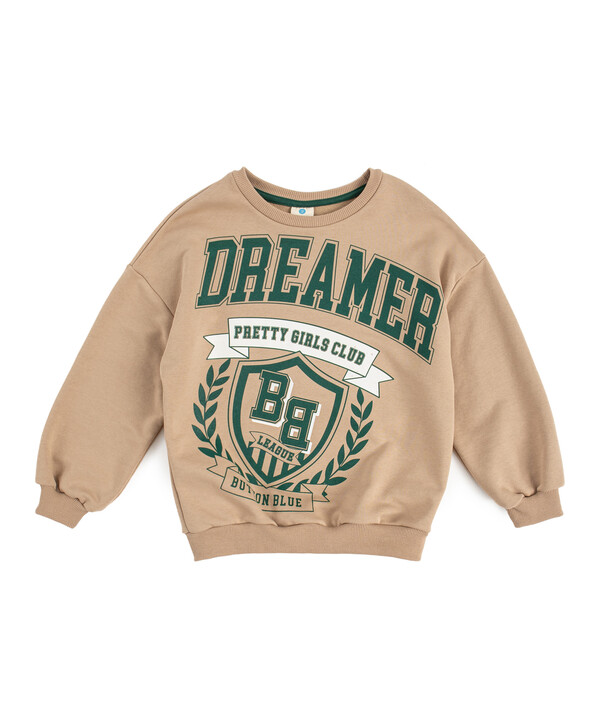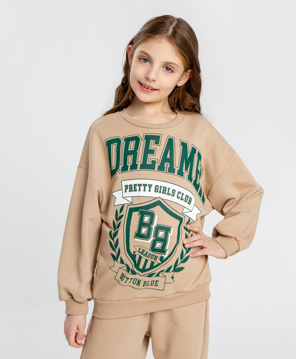 цветБежевый80% хлопок/20% полиэстер Хлопок Свитшот оверсайз с принтом бежевый для девочки Button Blue