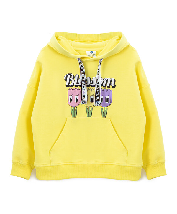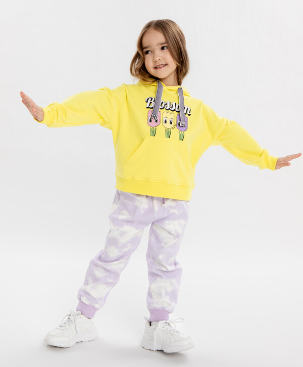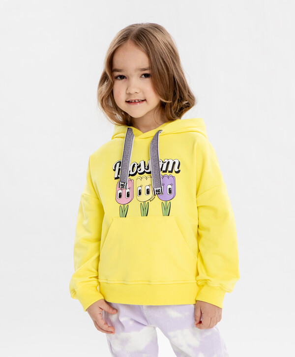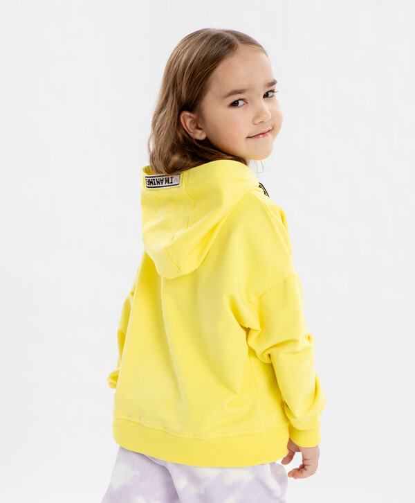 цветЖелтый95% хлопок/5% эластан Хлопок Худи оверсайз с принтом жёлтое для девочки Button Blue