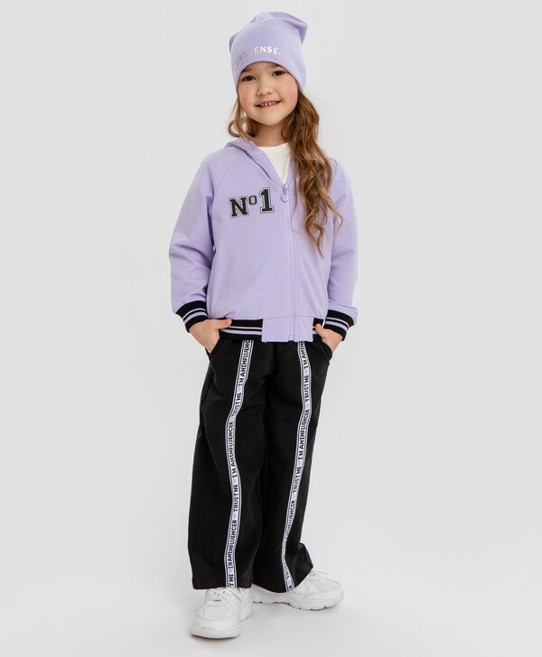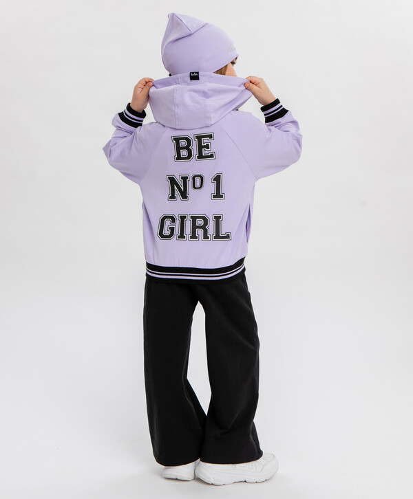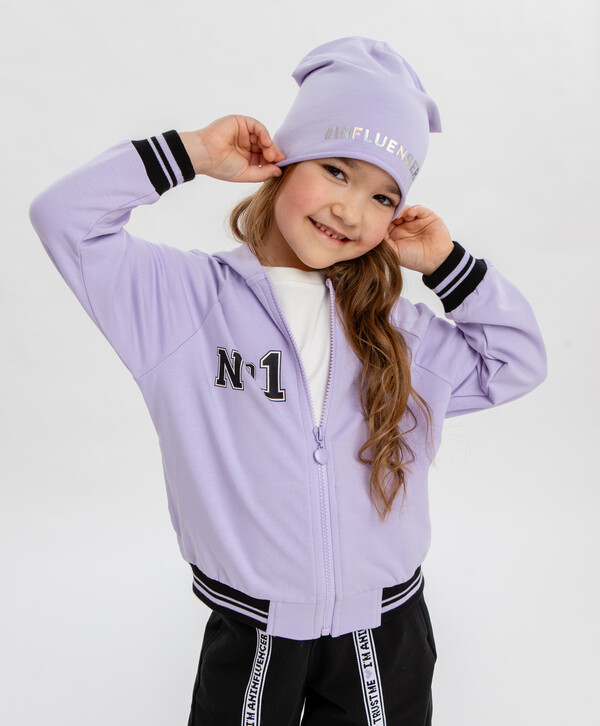цветСиреневый95% хлопок/5% эластан Хлопок Худи с капюшоном с принтом на молнии сиреневое для девочки Button Blue