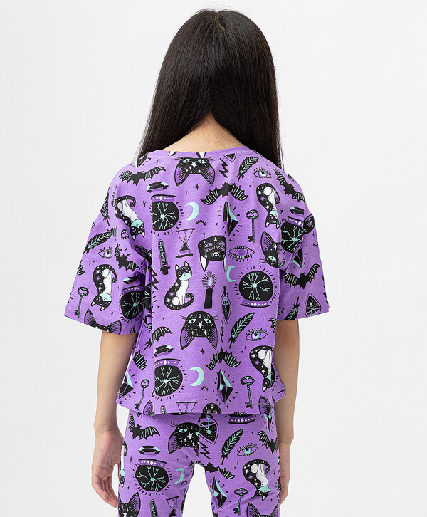 385 р. 770 р. Футболка хлопковая со спущенным рукавом и принтом фиолетовая Button Blue