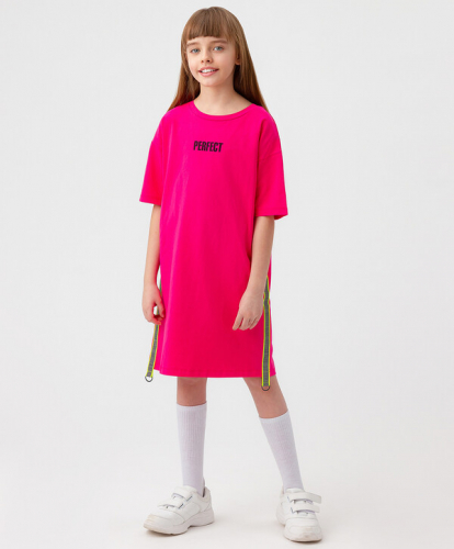 575 р. 1150 р. Платье-футболка с коротким рукавом и капюшоном черное для девочки Button Blue