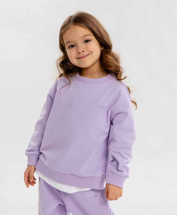 цветСиреневый95% хлопок/5% эластан Хлопок Свитшот базовый оверсайз сиреневый для девочки Button Blue