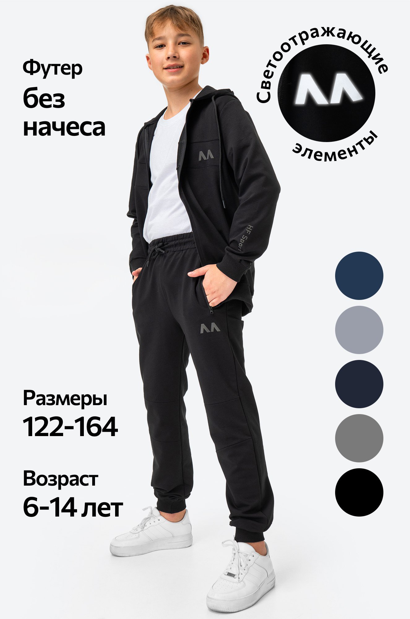 — практичный и износостойкий трикотаж из плотного хлопкового футера (230 г/м2);
