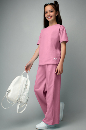*замеры выборочные, могут незначительно отличаться. ек и девочек-подростков выполнен из хлопковой ткани кулирная гладь. В комплект черного цвета входят футболка свободного кроя и брюки палаццо.