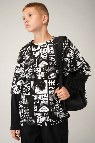 Черный лонгслив для мальчиков и мальчи..показатьков подростков — выбор для тех, кто ценит свободу и уличную эстетику.