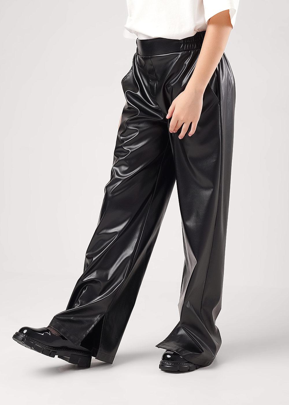 Стильные брюки из мягкой и приятной на ощупь экокожи прямого покроя - мастхэв гардероба. Комфортная и универсальная посадка, эластичный пояс. Сочетайте модель с любой футболкой, рубашкой или блузкой из новогодней коллекции.