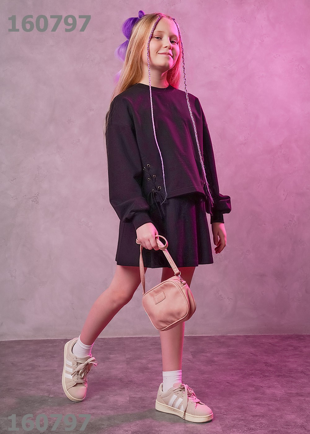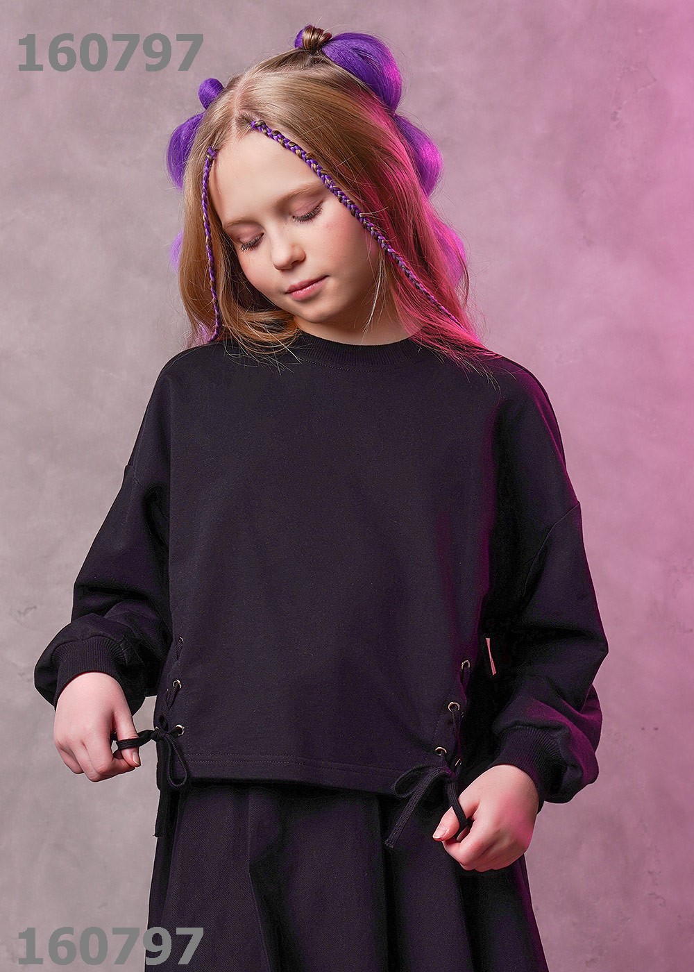 "Описание: Трендовый свитшот станет модной новинкой в твоем гардеробе! Стильное дополнение - разрезы на шуровке по переду. Сочетай свитшот с брюками или юбкой из новой коллекции и создавай яркие неповторимые образы на каждый день!
