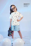 Зауженные джеггинсы. Эффектный принт звёзд по всей длине. Впереди имитация карманов и гульфика. Сзади накладные карманы. Пояс прострочен с эластичной тесьмой.