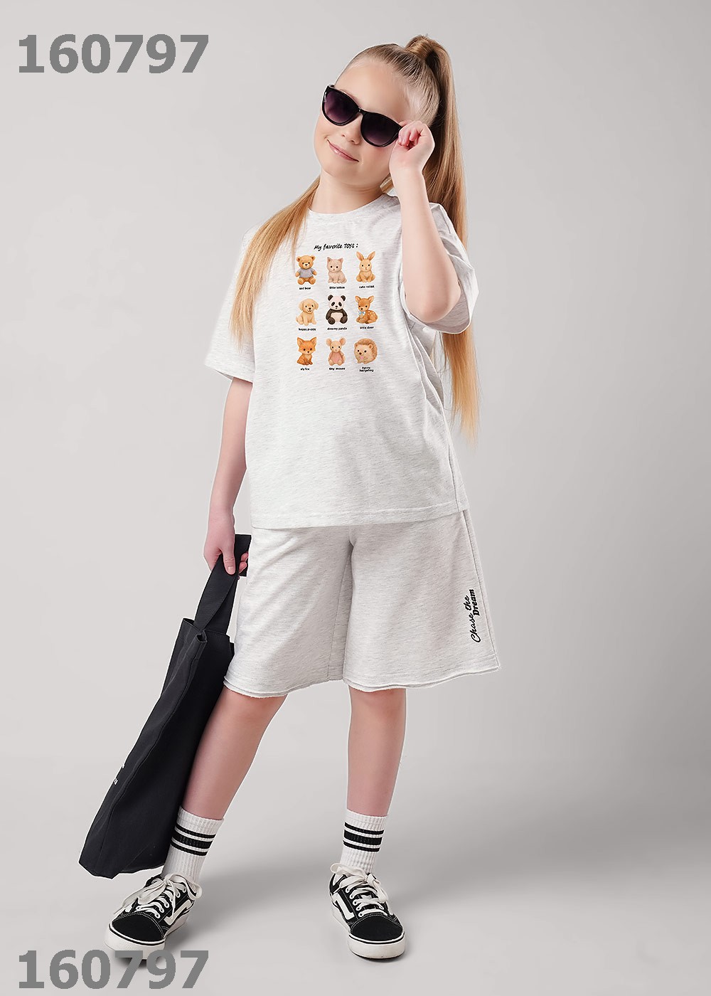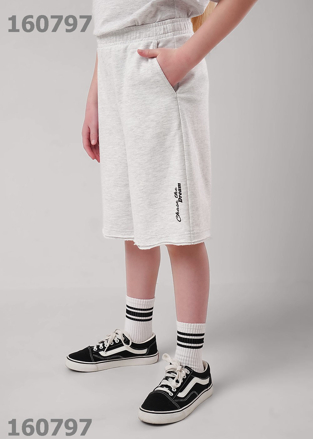"Описание: Удлиненные шорты для девочки с эластичной резинкой на поясе и регулировкой для идеальной посадки. Практичные карманы сбоку. Оригинальный необработанный двойной край по низу придаёт модели стильный вид. Идеальны с футболками из новой коллекции!