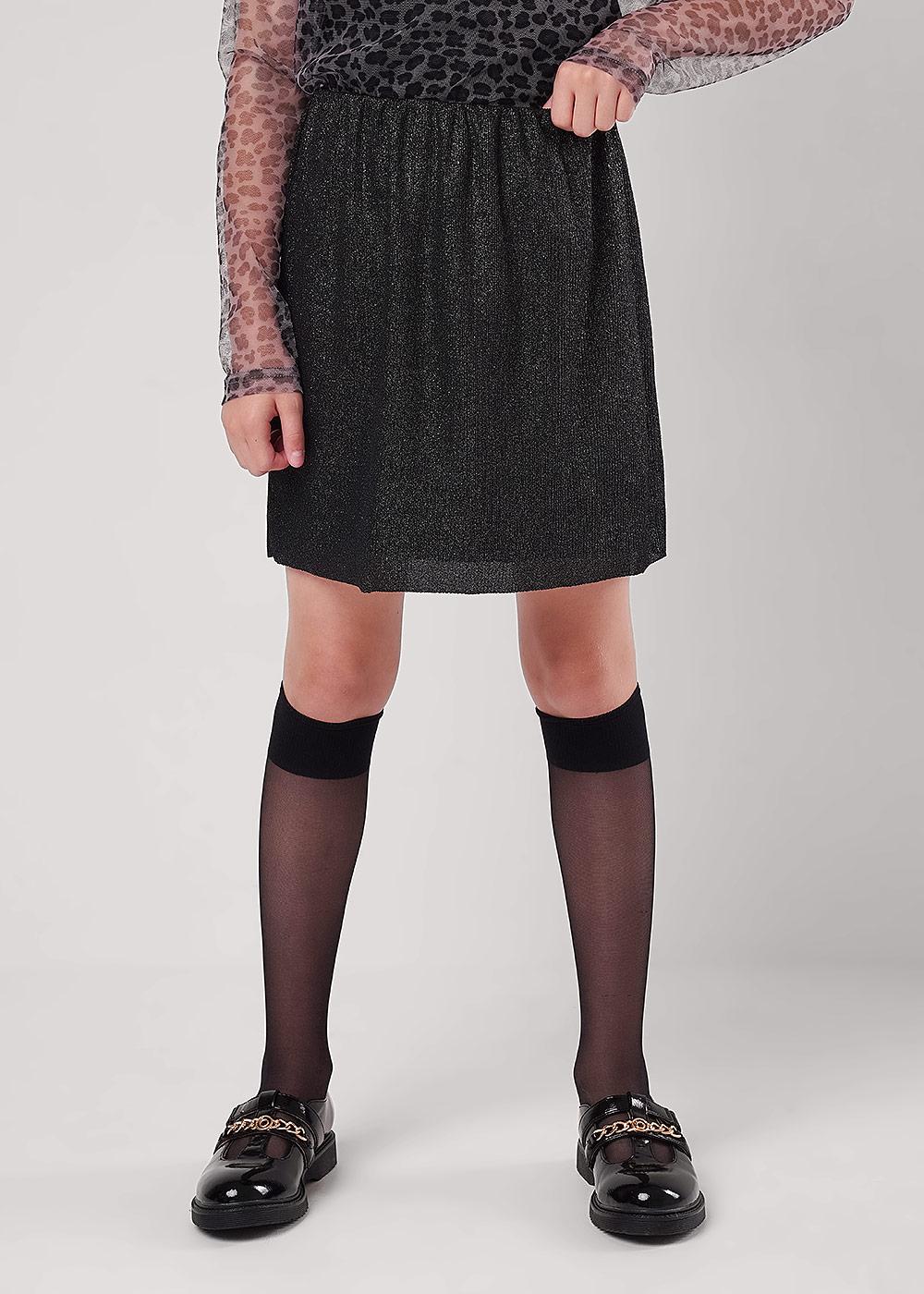 Стильная юбка из блестящей ткани. Умеренного объема. По верхнему краю пояса - оборка.