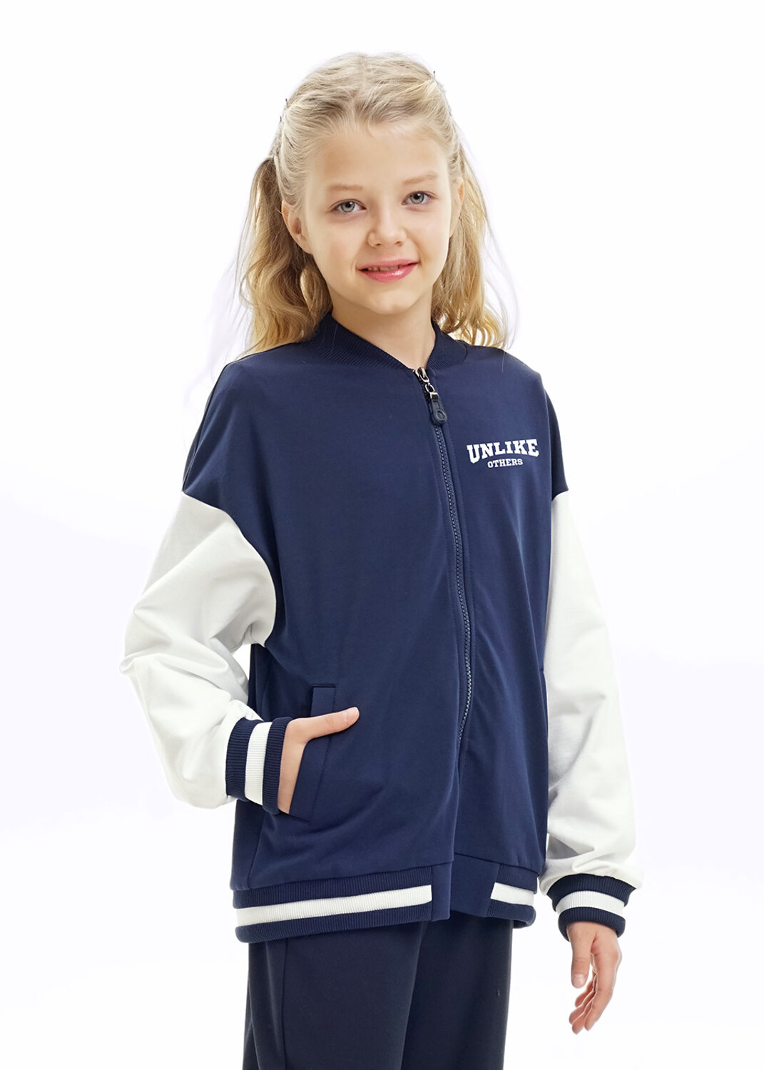 Трендовый бомбер среди подростков, универсальная вещь на каждый день. Круто смотрится как с юбкой так и широкими брюками. Украшен небольшим принтом в стиле "колледж".