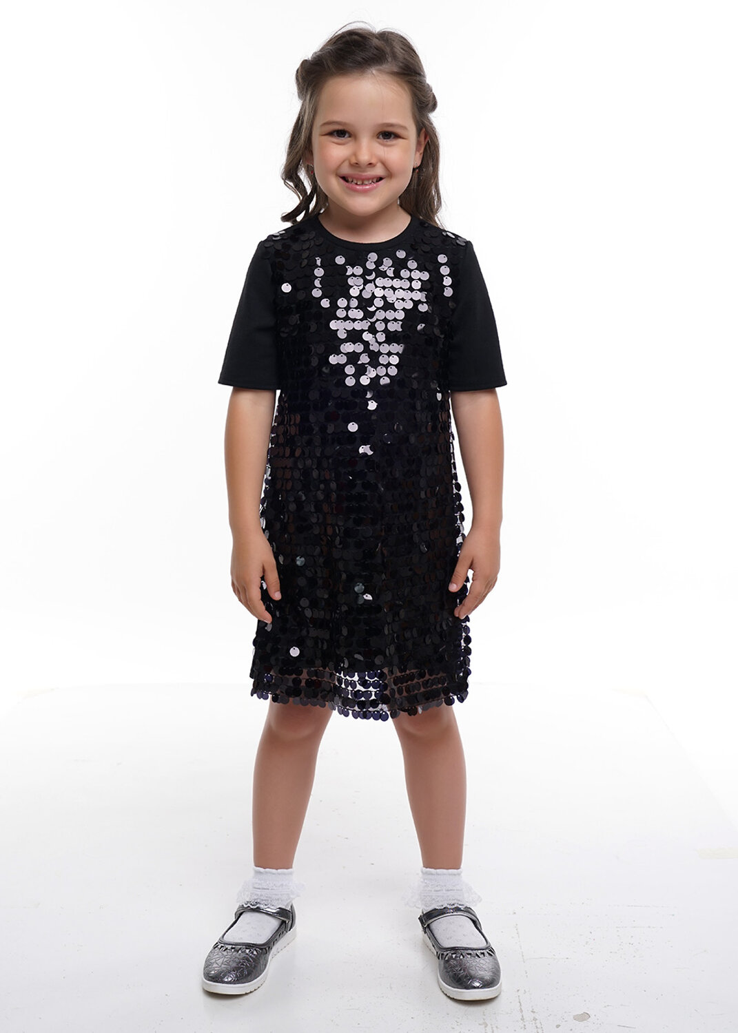 Маленькое черное платье. Прямой силуэт, выполнено из джерси. Отделано впереди новым полотном в крупные пайетки.