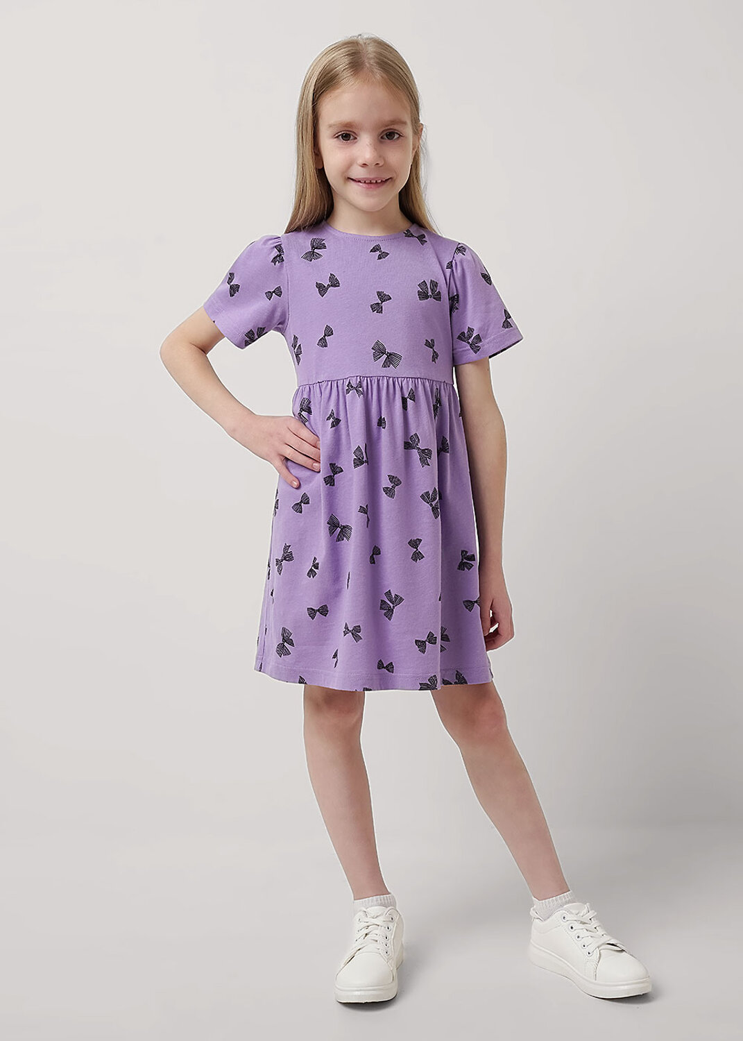 Незатейливое платье для принцессы из набивного хлопка. Заниженная талия, юбка на сборке, романтичный рукав фанарик на резинке. Чувствуй себя стильно и комфортно каждый день!