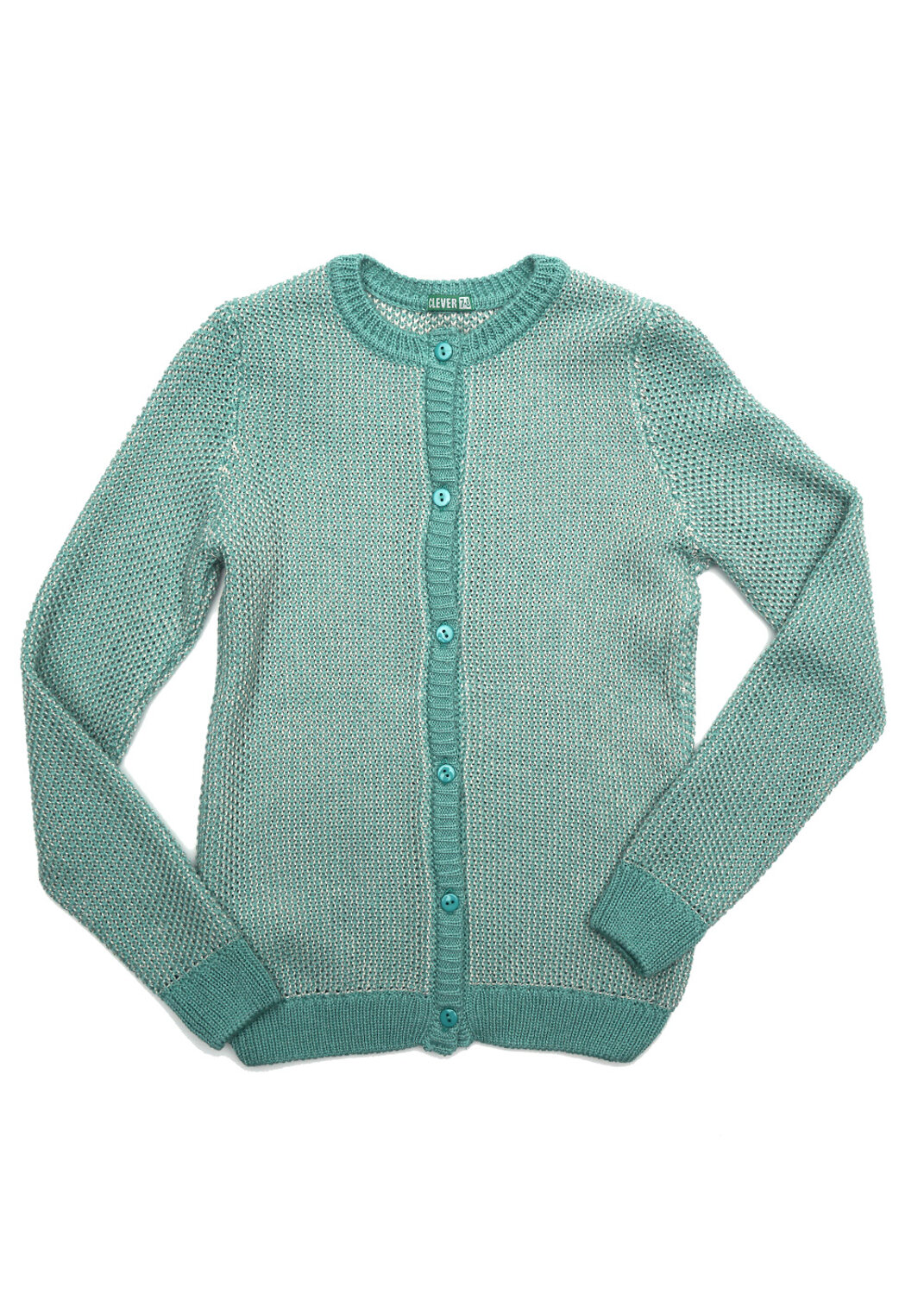 Джемпер вязаный на пуговицах для девочки, выполнен из пряжи 50%хлопок 50%акрил. Рукав втачной, круглая горловина. Выполнен необычным двусторонним переплетением из 2х цветов пряжи.