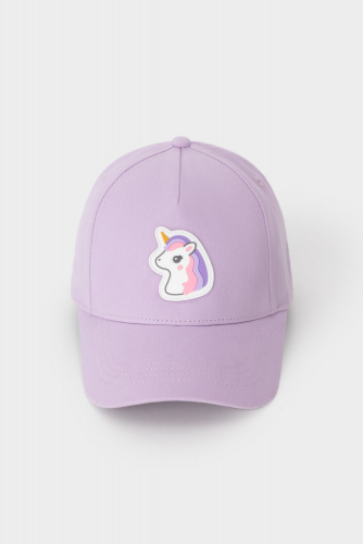 Кепка для девочки из натурального хлопка. Спереди украшена пайетками. Регулируется по ширине головы и фиксируется на затылке с помощью металлического зажима.