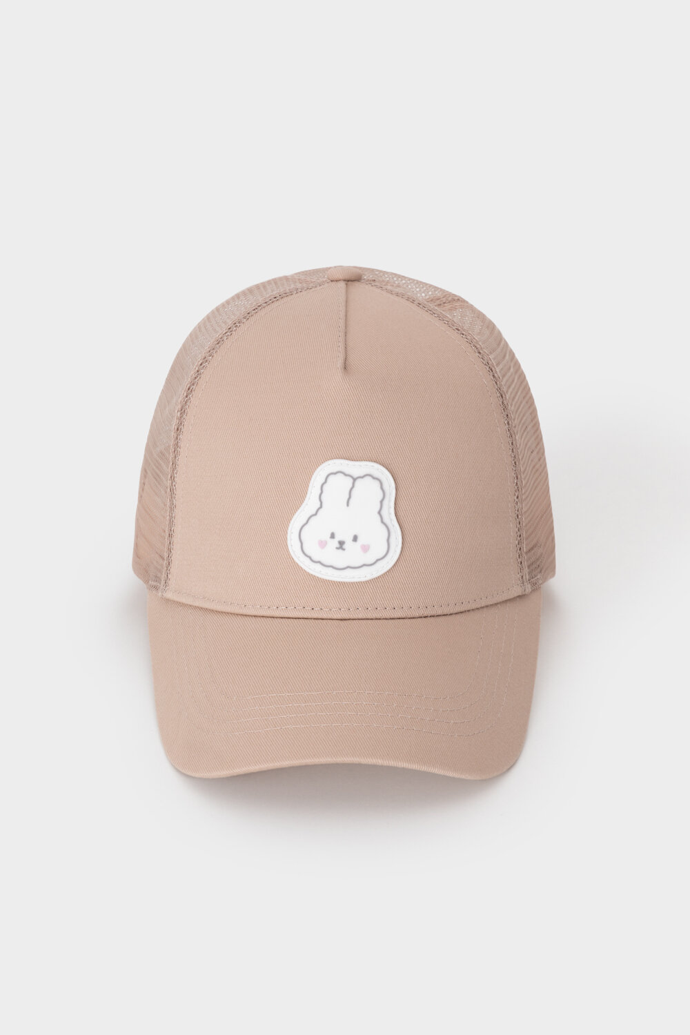 Кепка для девочки из текстиля и сетки. Спереди украшена оригинальной нашивкой. Регулируется по ширине головы и фиксируется на затылке с помощью пластиковой застёжки.