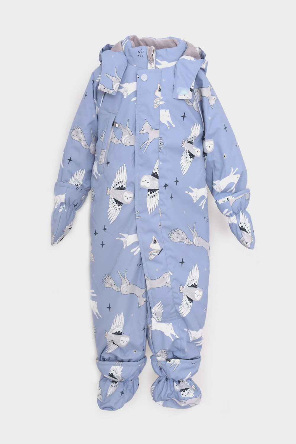 • Дополнительно в размерах 68-74, 74-80, 80-86 пристегивающиеся утепленные варежки и пинетки.