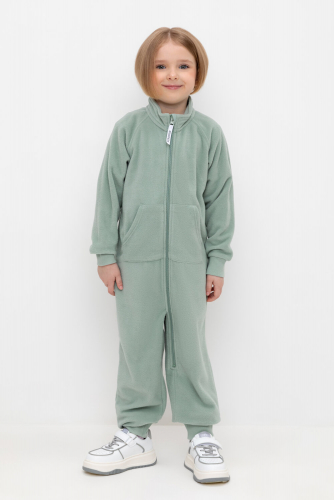 Флисовый комбинезон для девочки. У изделия высокий воротник и рукава-реглан. Застёгивается на удлинённую молнию. Предусмотрена защита шеи и подбородка. Спереди карман-кенгуру. Оригинальная набивка выполнена из стойких, гипоаллергенных текстильных красителей. Комбинезон сохраняет цвет и форму после многократных стирок.