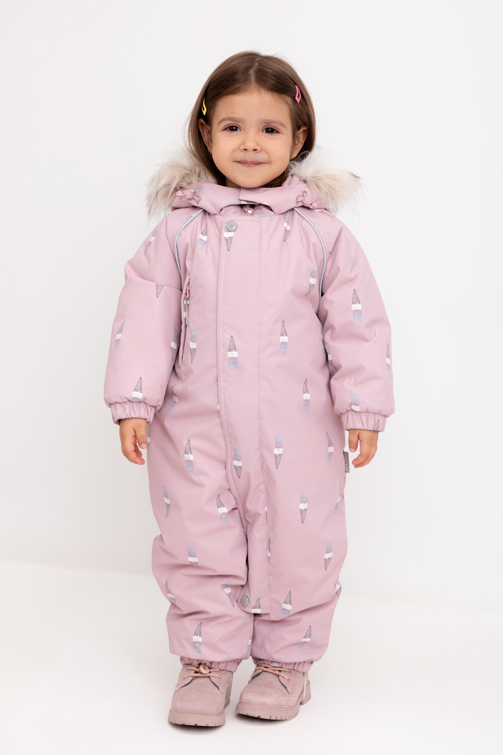 • Дополнительно в размерах 74-80, 80-86 пристегивающиеся утепленные варежки и пинетки.