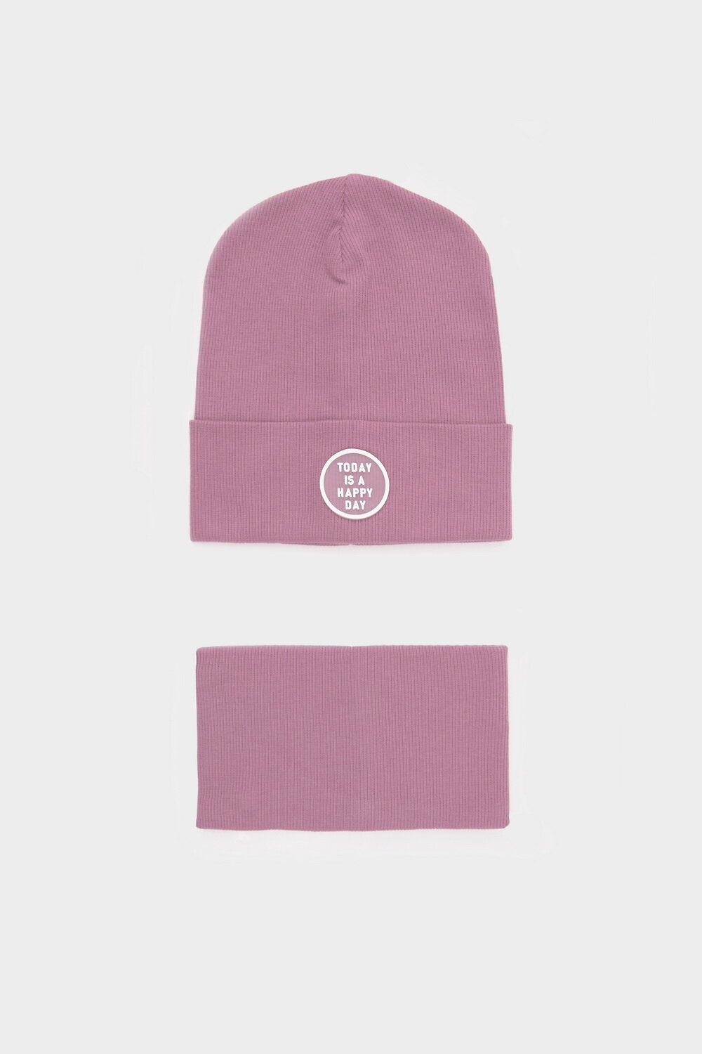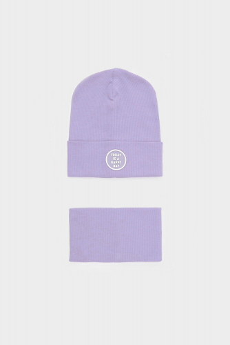 Комплект для девочки: шапка и снуд из хлопкового трикотажа в рубчик с добавлением эластана, окрашенного стойкими гипоаллергенными текстильными красителями. Изделия хорошо тянутся, после многократных стирок сохраняют цвет и форму.