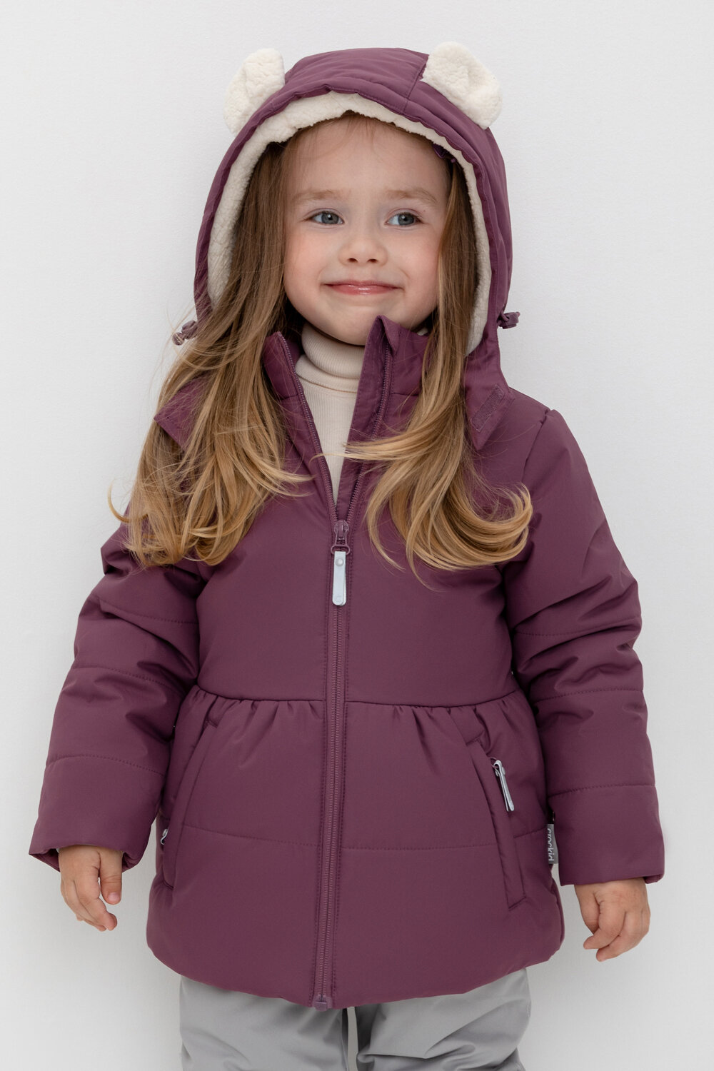 • Несъёмный капюшон с декоративными ушками и подкладом из флиса утягивается с помощью эластичной утяжки со стопперами.