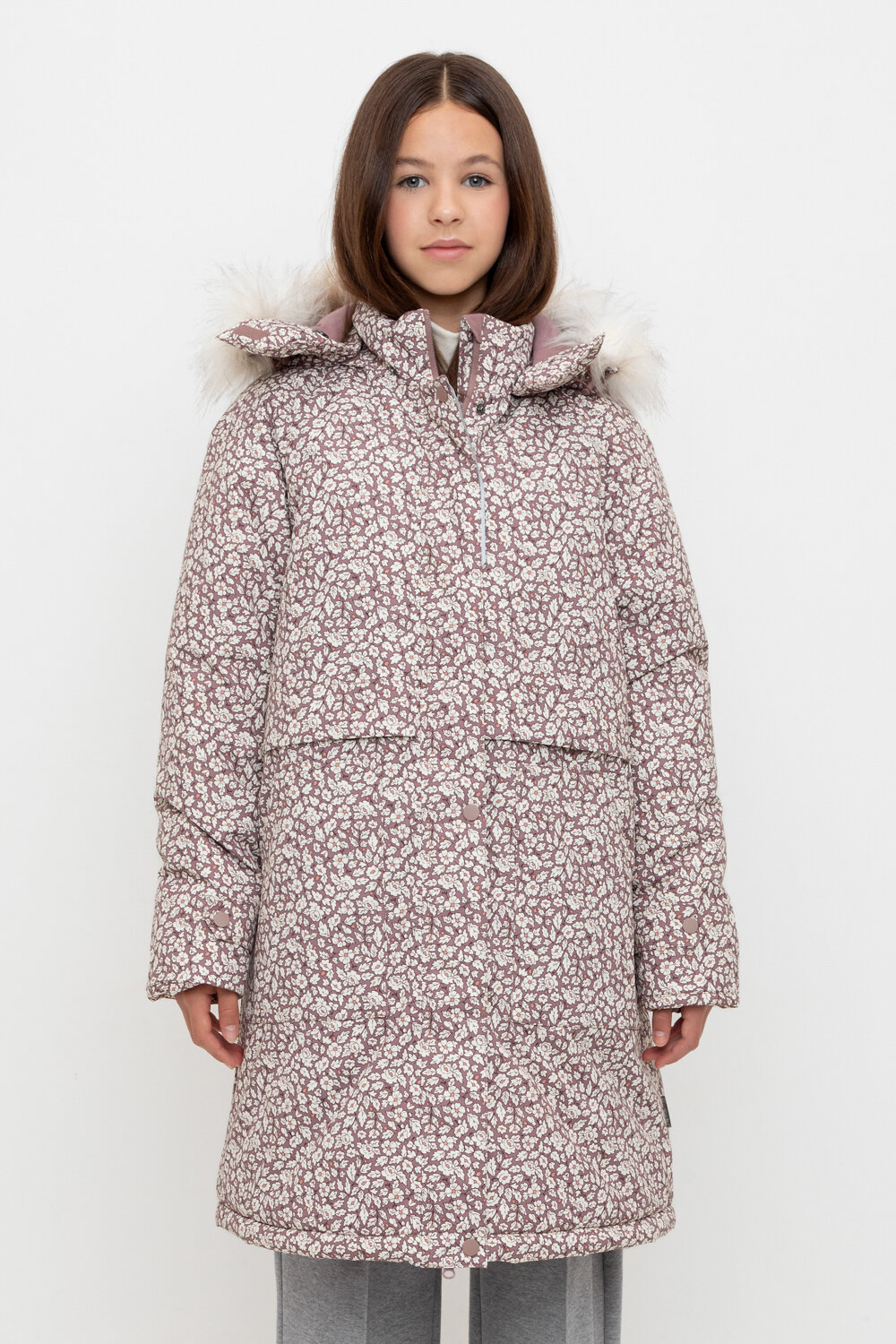• Съемный капюшон на липучках с отстегивающимся искусственным мехом и утяжкой со стопперами по бокам капюшона.