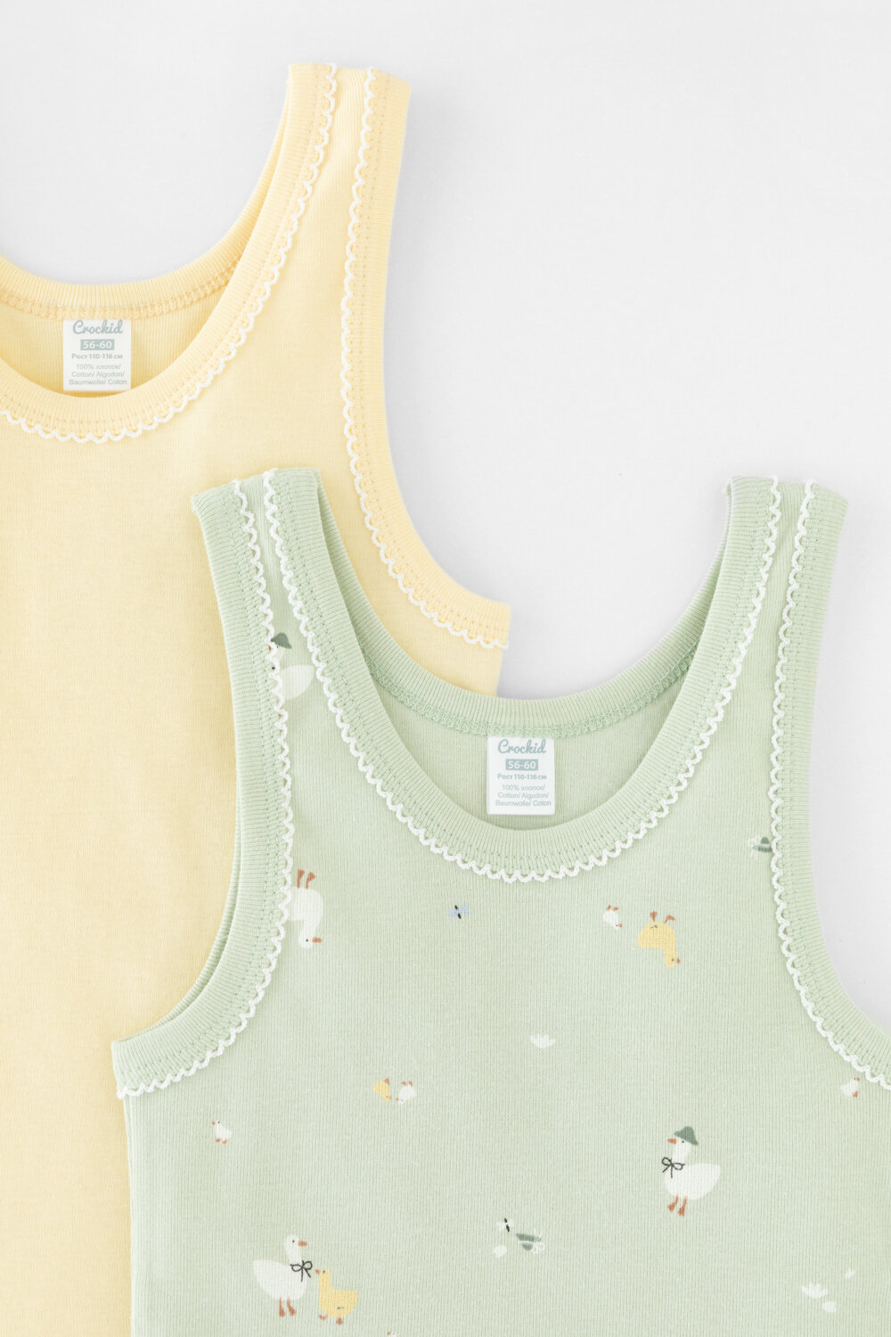 Трикотажные майки в комплекте 2 шт на лямках из натурального хлопка. Оригинальные набивка и принт выполнены из стойких, гипоаллергенных текстильных красителей. Изделие сохраняет цвет и форму после многократных стирок. Все трикотажные полотна производятся в соответсвии с нормами Швейцарского сертификата ЭкоТекс.