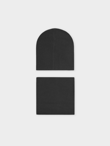 Комплект детский: шапка и снуд из хлопкового трикотажа в рубчик с добавлением эластана, окрашенного стойкими гипоаллергенными текстильными красителями. Изделия хорошо тянутся, после многократных стирок сохраняют цвет и форму.