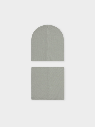 Комплект для мальчика: шапка и снуд из хлопкового трикотажа в рубчик с добавлением эластана, окрашенного стойкими гипоаллергенными текстильными красителями. Изделия хорошо тянутся, после многократных стирок сохраняют цвет и форму.