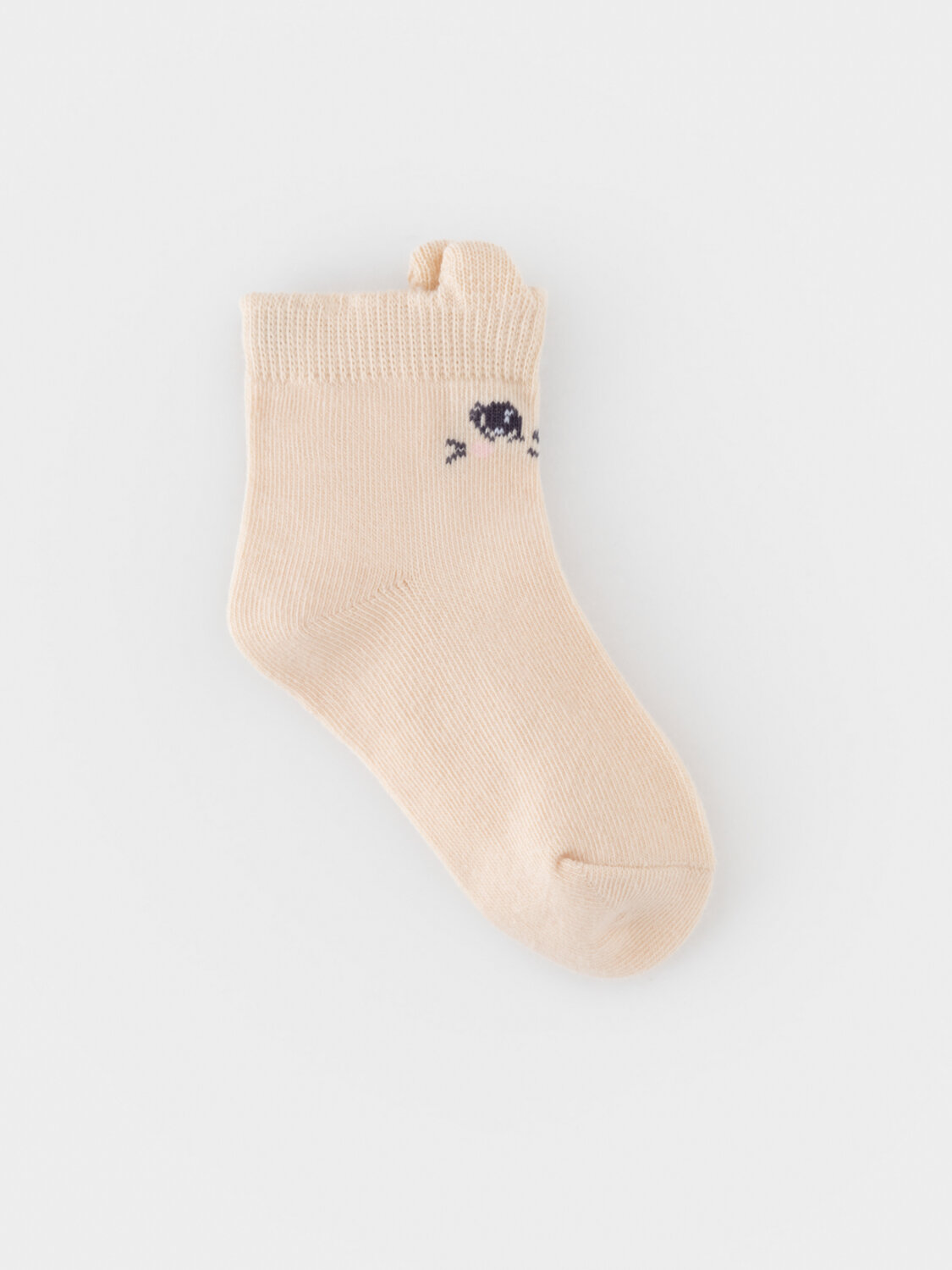 Носки короткие детские с формованной пяткой и эластичной резинкой по краю. Украшены рисунком и объёмными элементами. Изделие сохраняет форму и стойкий цвет после многочисленных стирок.