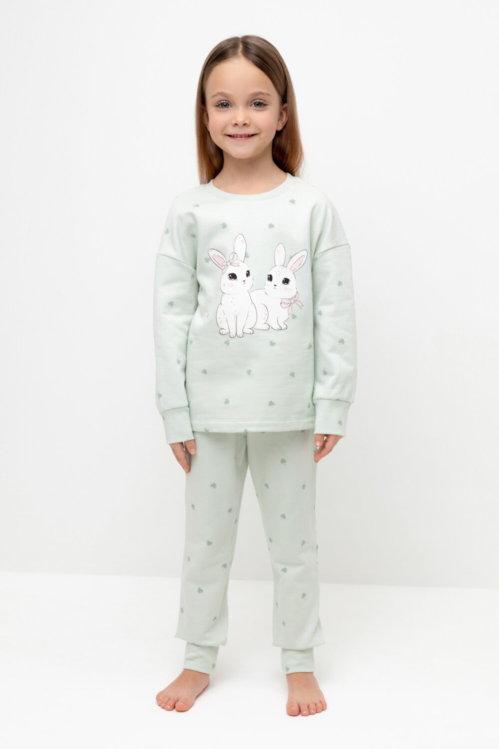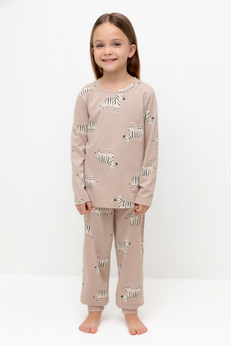 Трикотажная пижама с начёсом из натурального хлопка. Джемпер с длинными спущенными рукавами и брюки с эластичной резинкой в поясе. Мягкие манжеты на рукавах и по низу брюк. Оригинальные набивка и принт выполнены из стойких гипоаллергенных текстильных красителей. Изделие сохраняет цвет и форму после многократных стирок. Все трикотажные полотна производятся в соответсвии с нормами швейцарского сертификата ЭкоТекс.