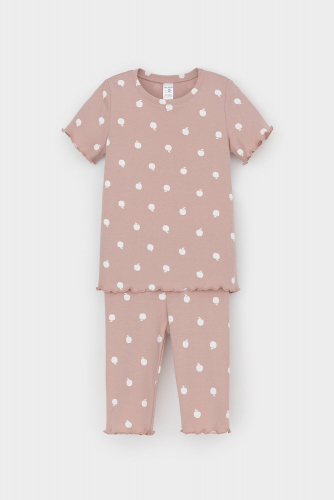 Трикотажная пижама в рубчик из натурального хлопка. Футболка с короткими втачными рукавами и шорты с эластичной резинкой в поясе. Оригинальная набивка выполнена из стойких текстильных красителей. Изделие сохраняет цвет и форму после многократных стирок. Все трикотажные полотна производятся в соответсвии с нормами швейцарского сертификата ЭкоТекс.