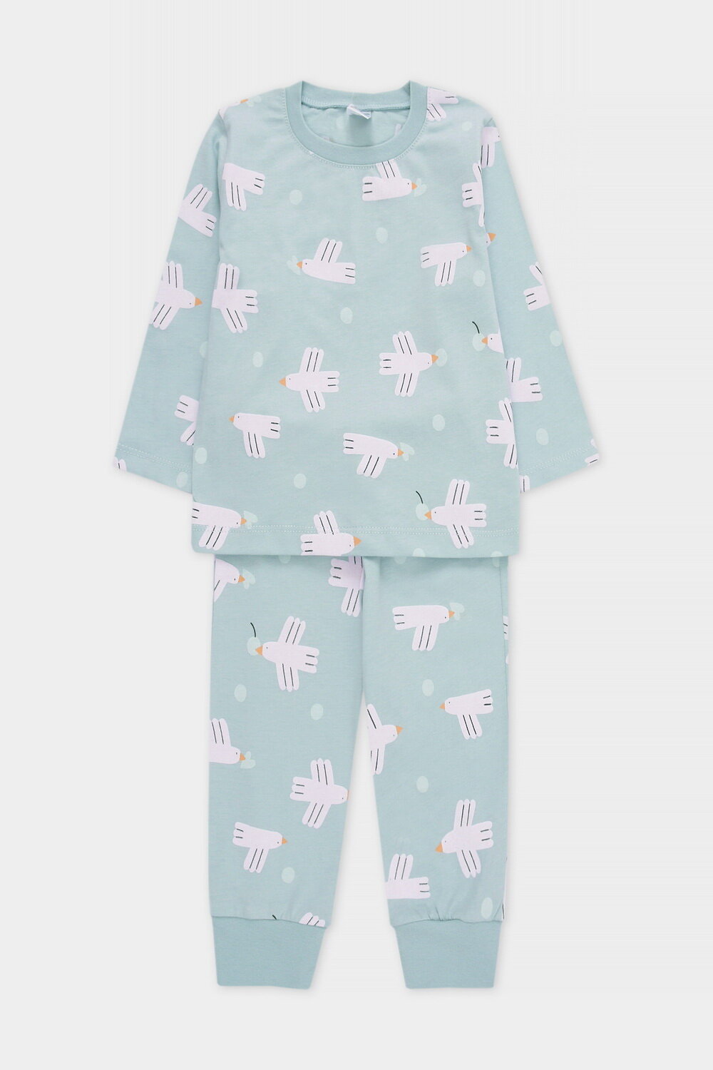 Трикотажная пижама из натурального хлопка. Джемпер с длинными рукавами. У брюк эластичный пояс на резинке, эластичные манжеты. Оригинальная набивка выполнена из стойких, гипоаллергенных текстильных красителей. Пижама сохраняет цвет и форму после многократных стирок. Все трикотажные полотна производятся в соответсвии с нормами Швейцарского сертификата ЭкоТекс.