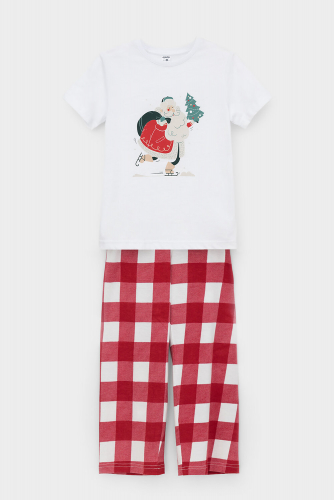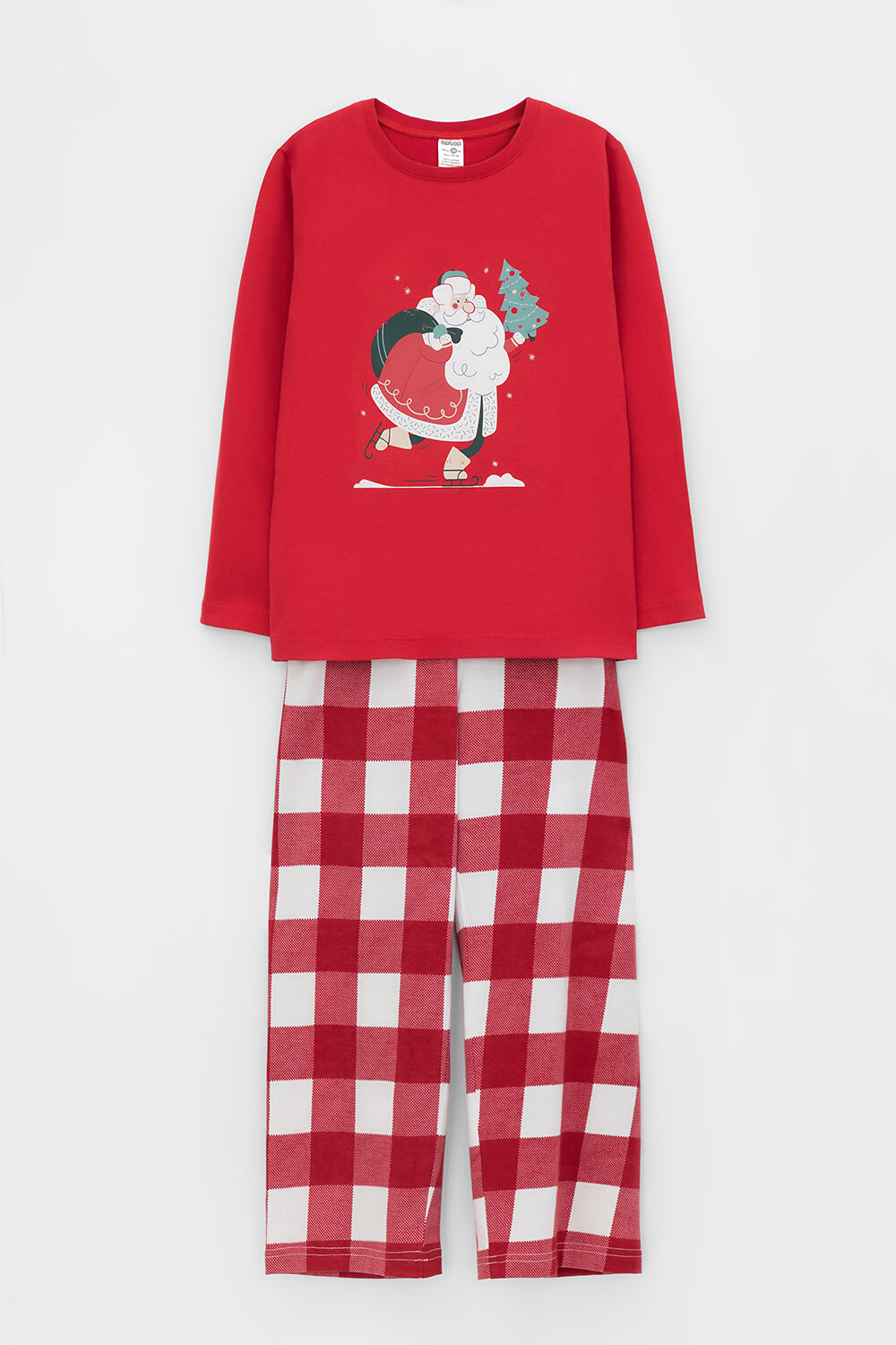 Трикотажный пижамный комплект из натурального хлопка. У джемпера длинные втачные рукава и эластичная мягкая горловина. Брюки с удобным поясом на резинке. Оригинальная набивка и принт выполнены из стойких, гипоаллергенных текстильных красителей. Все трикотажные полотна производятся в соответствии с нормами Швейцарского сертификата ЭкоТекс.