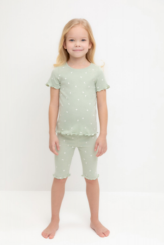 Трикотажная пижама в рубчик из натурального хлопка. Футболка с короткими втачными рукавами и шорты с эластичной резинкой в поясе. Оригинальная набивка выполнена из стойких текстильных красителей. Изделие сохраняет цвет и форму после многократных стирок. Все трикотажные полотна производятся в соответсвии с нормами швейцарского сертификата ЭкоТекс.