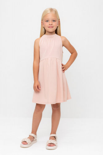 Платье для девочки из высококачественного трикотажа пике с воротничком-стойкой. Для удобства одевания платье застёгивается на пуговицу на спинке. Платье сохраняет форму и стойкий цвет после многочисленных стирок и идеально подходит на каждый день.