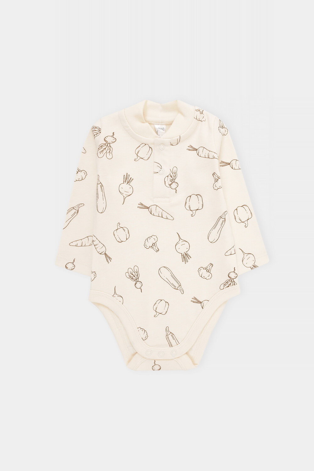 Боди из рибаны с воротником для новорожденных из мягкого, эластичного трикотажа произведенного из натурального хлопка. Застежка на кнопки спереди. Изделие застегивается на кнопки в области паха. Все трикотажные полотна производятся в соответсвии с нормами Швейцарского сертификата ЭкоТекс.