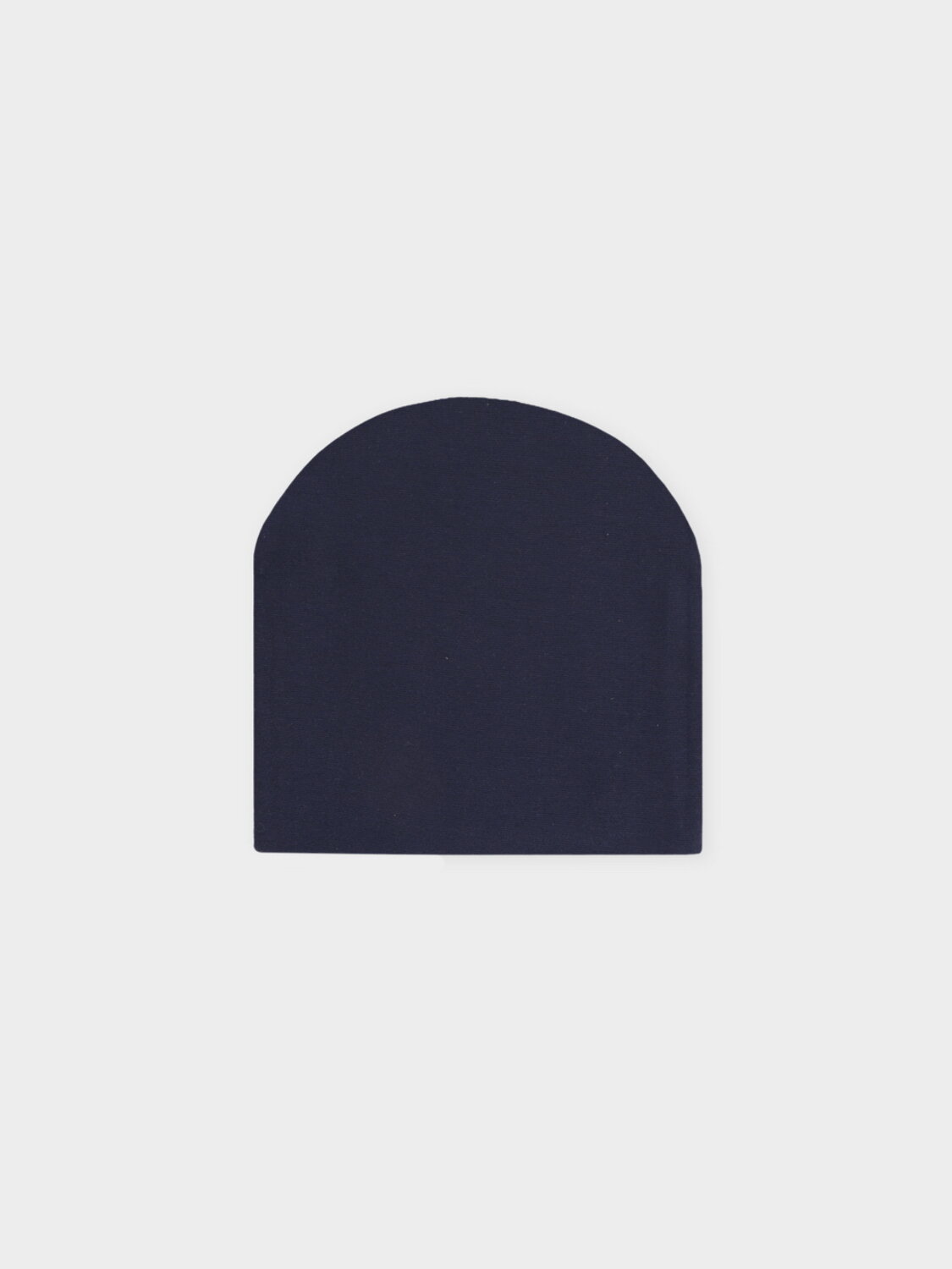 Шапочка из однотонного эластичного трикотажа, двойная. Удлиненная скругленная макушка.