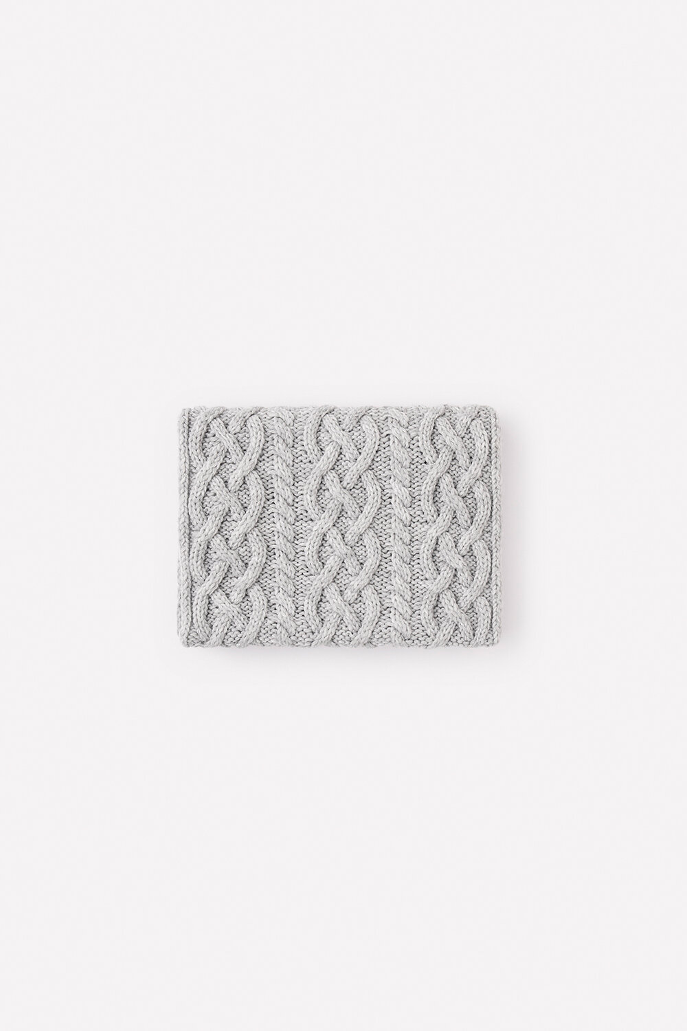 Стильный снуд из полушерсти с вязаным узором из кос. Защитит горло и согреет ребёнка во время прогулки. 30х120