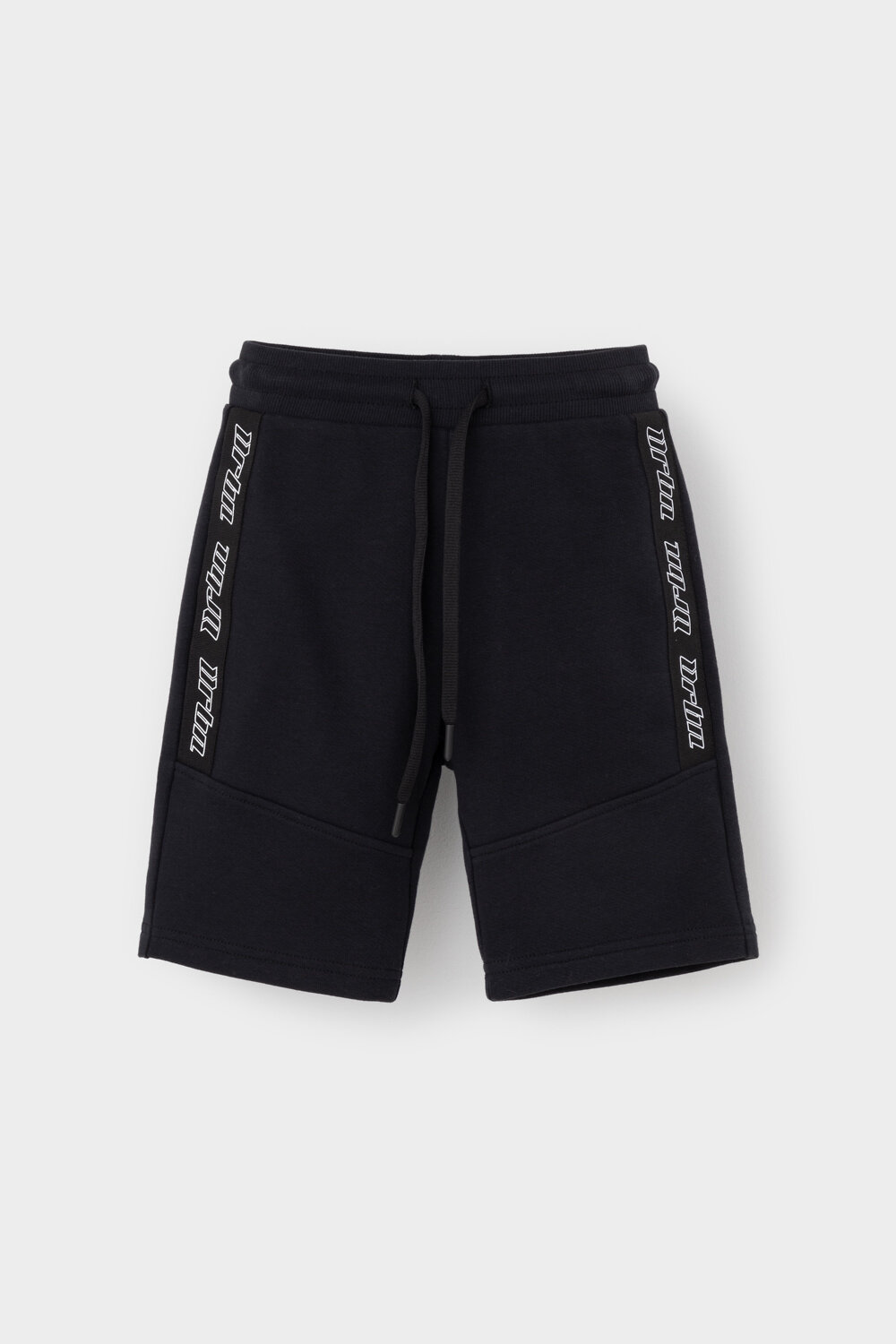 Трикотажные шорты для мальчика из петельчатого футера диагональ. Эластичный пояс на резинке регулируется по ширине с помощью шнурка.