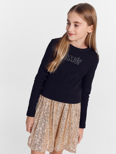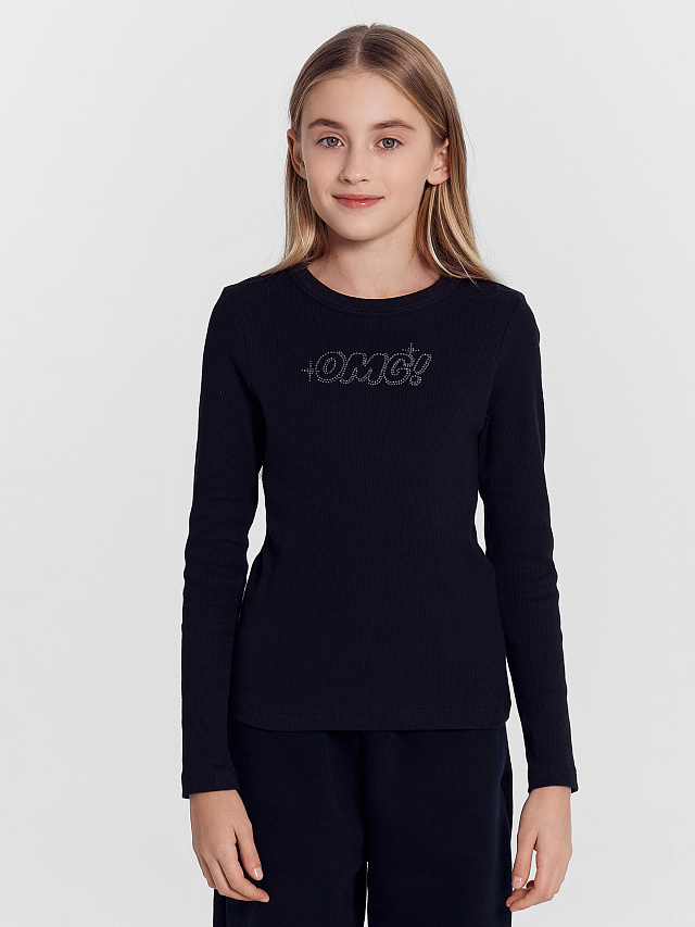 Джемпер для девочек черный с надписью из страз